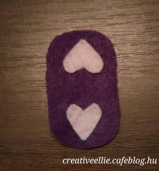 Felkerültek a fülek és a szemek. A szemeket hímeztem. Próbáltam gyönggyel is, de úgy nem tetszett.
