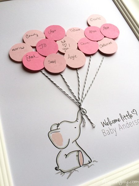 Amikor az elefántos babaszoba dekorokat kerestem, akkor találtam ezt a kedves ötletet. Ott mint babaváró buli kelléke szerepel. Én úgy szeretném megvalósítani, hogy aki jön látogatóba, az írja alá.