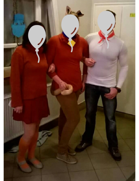Viszont a Facebook emlékeztetett a két évvel ezelőtti sulis farsangra (feldobta a képet). Tavaly, amikor Minnie Mouse voltam, írtam, hogy a jelmez egy részét előző évben is használtam. Szóval, tavalyelőtt Vilma voltam a Scooby-Doo-ból. Két kollégával öltöztem be; az ötlet pedig előző nap jött csak, szóval gyorsan összedobtuk a jelmezt azokból a dolgokból amik otthon is megtalálhatók. Így került mellém Scooby és az izmos srác (akinek nem jut eszembe a neve).