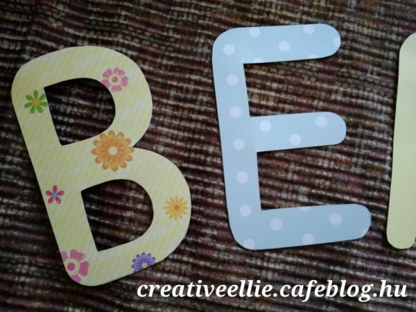 Elég ciki, de mostanra sikerült végre megcsinálnom a gyerekszoba ajtajára a feliratot. A betűk többsége ezekből a mintás papírokból készült.