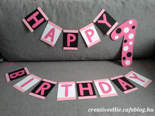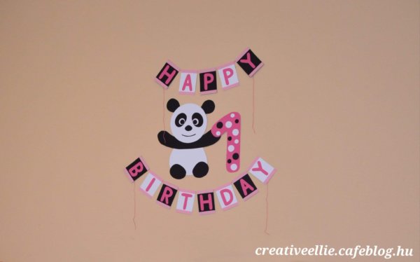 Október 25-én a kis panda imádó kislányom egy éves lett 🙂 Nem igazán szeretem a fekete dekorációt, de mivel a panda fekete-fehér, így adottak volt a dekor alapszínei. Egy kis rózsaszínnel dobtam föl és szerintem elég látványos lett.