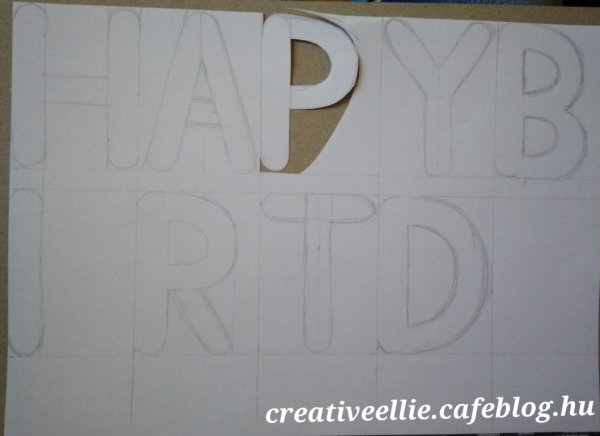 Először megrajzoltam a felirat betűinek a sablonját, majd kivágtam a betűket.