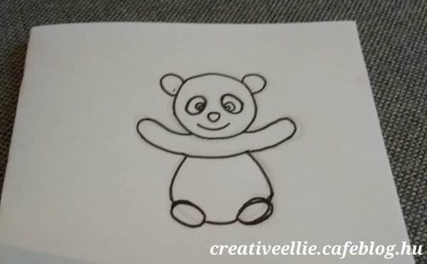 Egy A4-es lapot félbehajtottam, majd először ceruzával megrajzoltam a pandát, aztán fekete filctollal átrajzoltam.