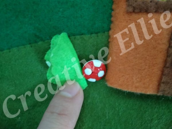 A bábok ujjbábok. Őket még a kezdeti lelkesedéskor készítettem. Ha most készülnének, annyit változtatnék rajtuk, hogy a szemüket is hímezném, nem gyöngyből készíteném (mert ott fennáll a veszélye, hogy leeshet). Akkor még úgy gondoltam, hogy a jövőbeni gyerekem később fog bábozni, viszont Bernit már most érdeklik a bábok.